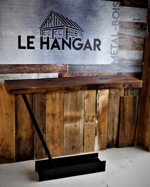 Les deux créateurs ont uni leurs forces afin de créer Le Hangar, un commerce local qui allie harmonieusement bois et métal dans la confection de meubles sur mesure uniques et personnalisés.